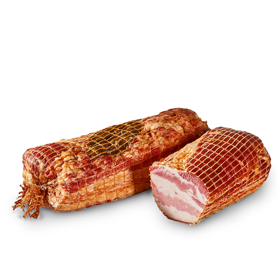98% boczek wieprzowy, sól peklująca, przyprawy.